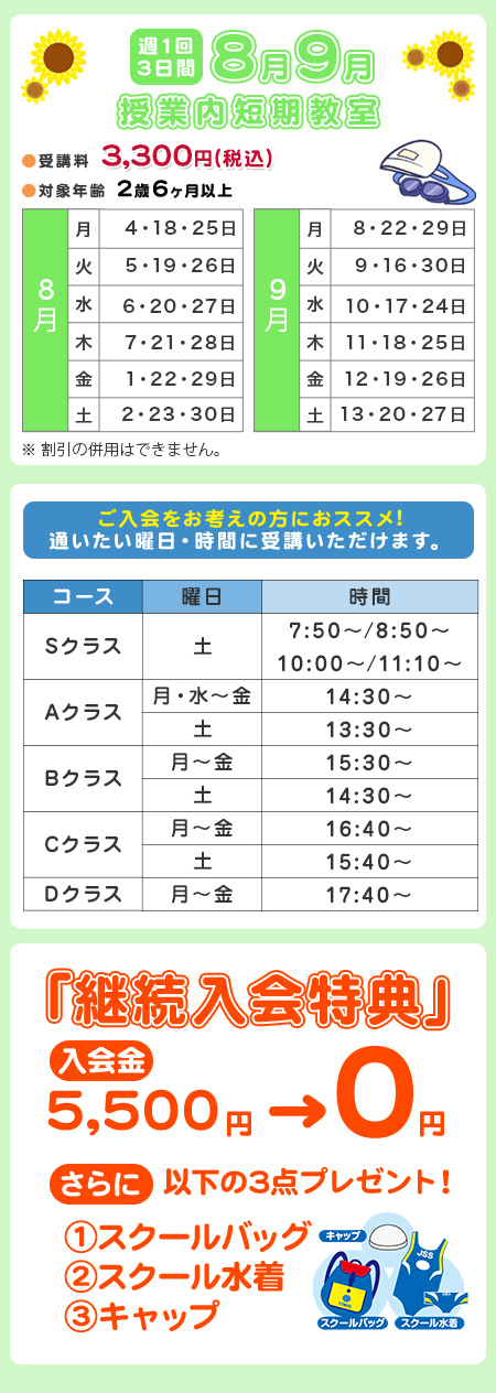 8月9月 授業内短期教室のお知らせ