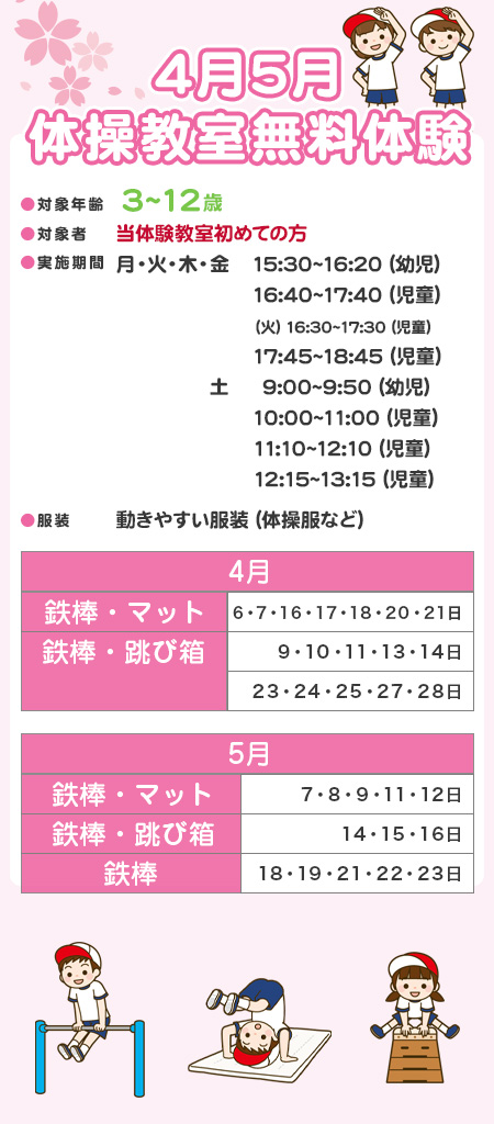 4月5月体操教室無料体験のお知らせ